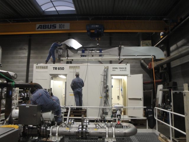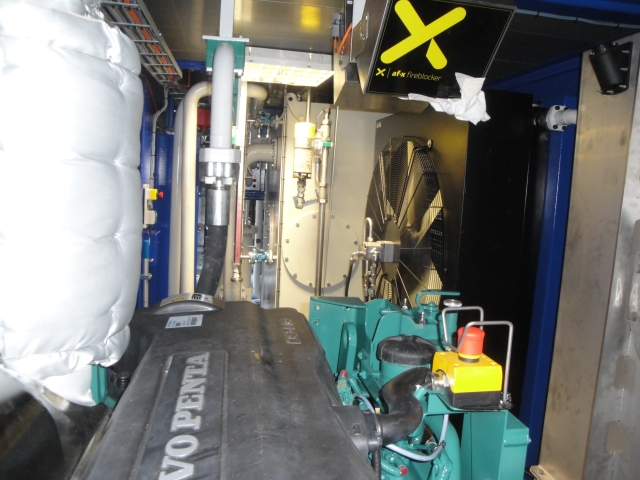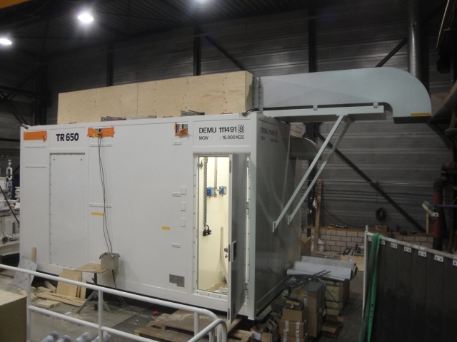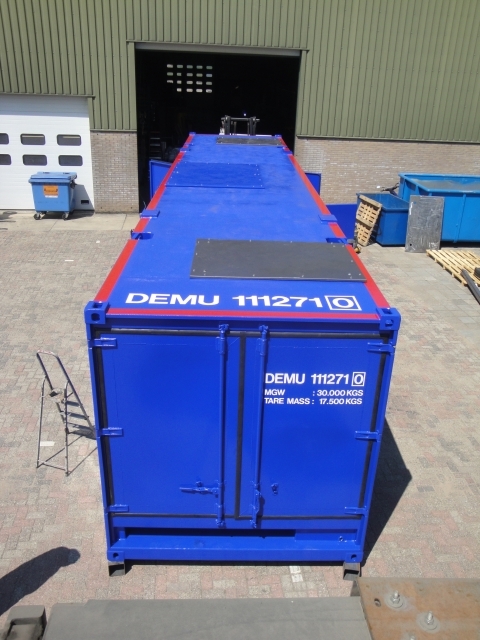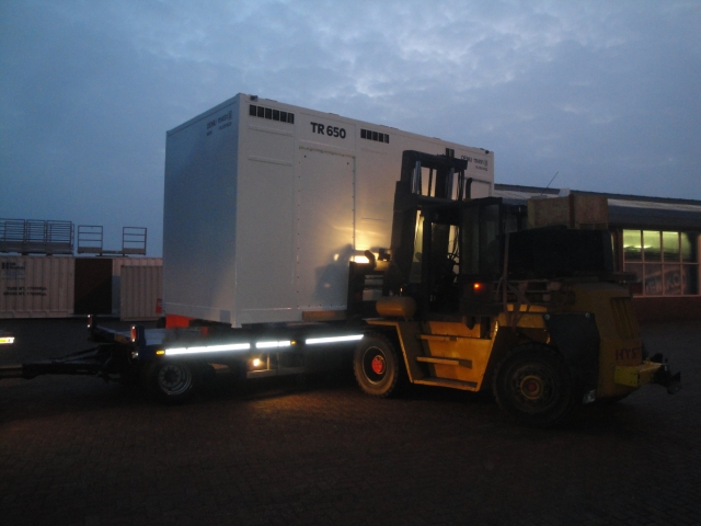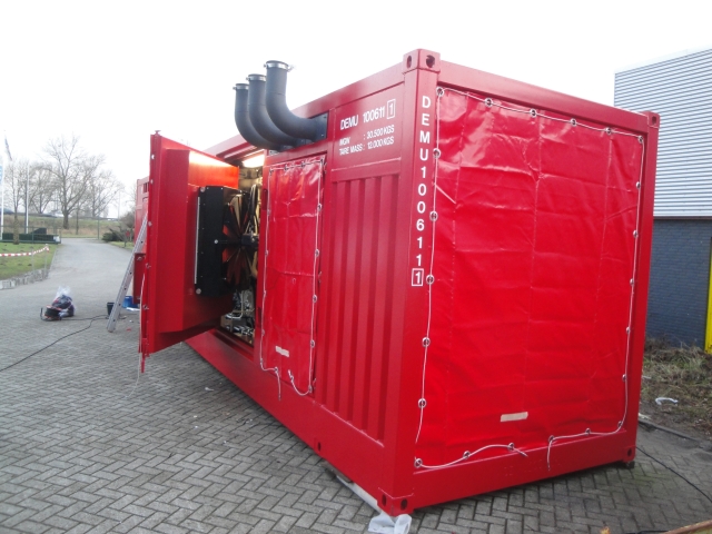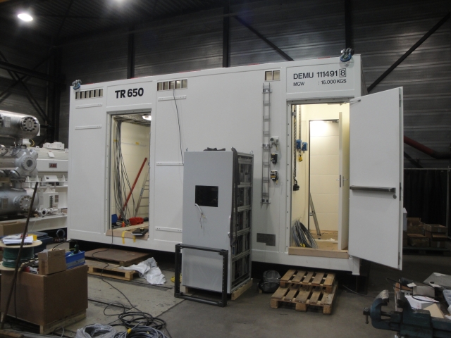 De besturingscabine voor de nieuwe pijpenlegger “Deep Energy” van Technip is gereed en is verpakt en klaar voor transport. De cabine zal in Noorwegen op de eveneens door Demko vervaardigde, 3 meter hoge fundatie aan boord van het schip worden geplaatst. Door de verhoogde opstelling blijft er op het dek ruimte vrij voor lieren en andere installaties. De cabine, fundatie en bordessen zijn gebouwd onder DNV keur, volgens de Rules for Certification of Ships. Vanuit de cabine is er goed zicht op de installatie door de ISO 614 gecertificeerde, elektrisch verwarmde veiligheidsbeglazing met ruitenwissers en speciale zonwering.| Ook de FAT test in de proefopstelling is naar tevredenheid afgerond. De E&I container voor het “Total K6CC Booster Compression Project” wordt gereed gemaakt voor transport naar het productieplatform op de Noordzee. De gecertificeerde offshore container is A60 brandwerend uitgevoerd en voorzien van een Atex gekeurd overdruk systeem, waarmee deze in een explosiegevaarlijke omgeving Zone 2 kan worden geplaatst. De in de container geplaatste besturingskasten verzorgen de aandrijving van de nieuwe gascompressor, geleverd door ConPackSys. Een serie van 3 stuks 40-ft duaal gecertificeerde (Offshore en CSC) 40-ft containers, waarin de dubbele dieselgedreven hydraulische powerpacks staan, is gereed. Met deze units worden de spudpalen bediend van de pontons, die over de hele wereld ingezet kunnen worden. Een bijzonderheid is dat de containers ook voldoen aan de Rules for Certification of Ships, en zowel Lloyd’s als GL zijn gecertificeerd. 26-04-2011 Een serie van 3 stuks 40-ft CSC gecertificeerde 40-ft high cube containers, waarin dubbele dieselgedreven hydraulische powerpacks staan, is gereed. Deze units worden ingezet op de nieuwe generatie PTC kranen van Mammoet. De containers zijn ontworpen, gebouwd, getest en gecertificeerd conform de ISO 1496 norm en kunnen nu als “gewone” container wereldwijd worden vervoerd. Het bijzondere van deze PTC kraan (Platform Twinring Containerized) is dat deze zwenkt op een ring en dat alle onderdelen van de kraan passen in een standaard container of zelf een “standaard” container zijn, waardoor de kraan makkelijk kan worden vervoerd.